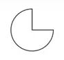 Answer choice E displays a full circle with internal divisions creating a symmetrical pattern. While it is circular like our target shape, it's missing the key feature we need - that quarter segment cutout that creates the "mouth" opening. It's a complete circle, whereas our target is missing approximately one quarter of the circle. This doesn't match, so E is not correct.