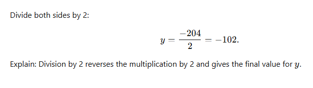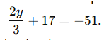 We have 2y/3 +17=−51. Our goal is to isolate y— get y alone on one side. Think of the equation like a balanced scale: whatever you do to one side you must do to the other to keep it balanced.
