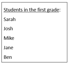 Read the example: each name appears on its own line with no sentences or story events. That typical layout signals a list.