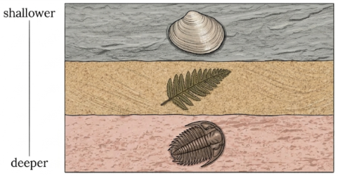 The diagram below shows fossils in an undisturbed sedimentary rock sequence: