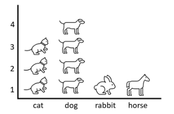 The directions tell us: each picture = one student. That means every cat picture counts as 1 student, every dog picture counts as 1 student, and so on.