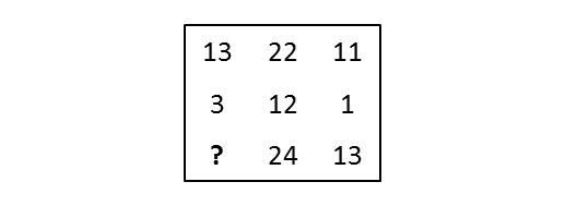 In the first row: 13+9=22, 22-11=11