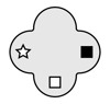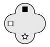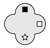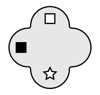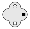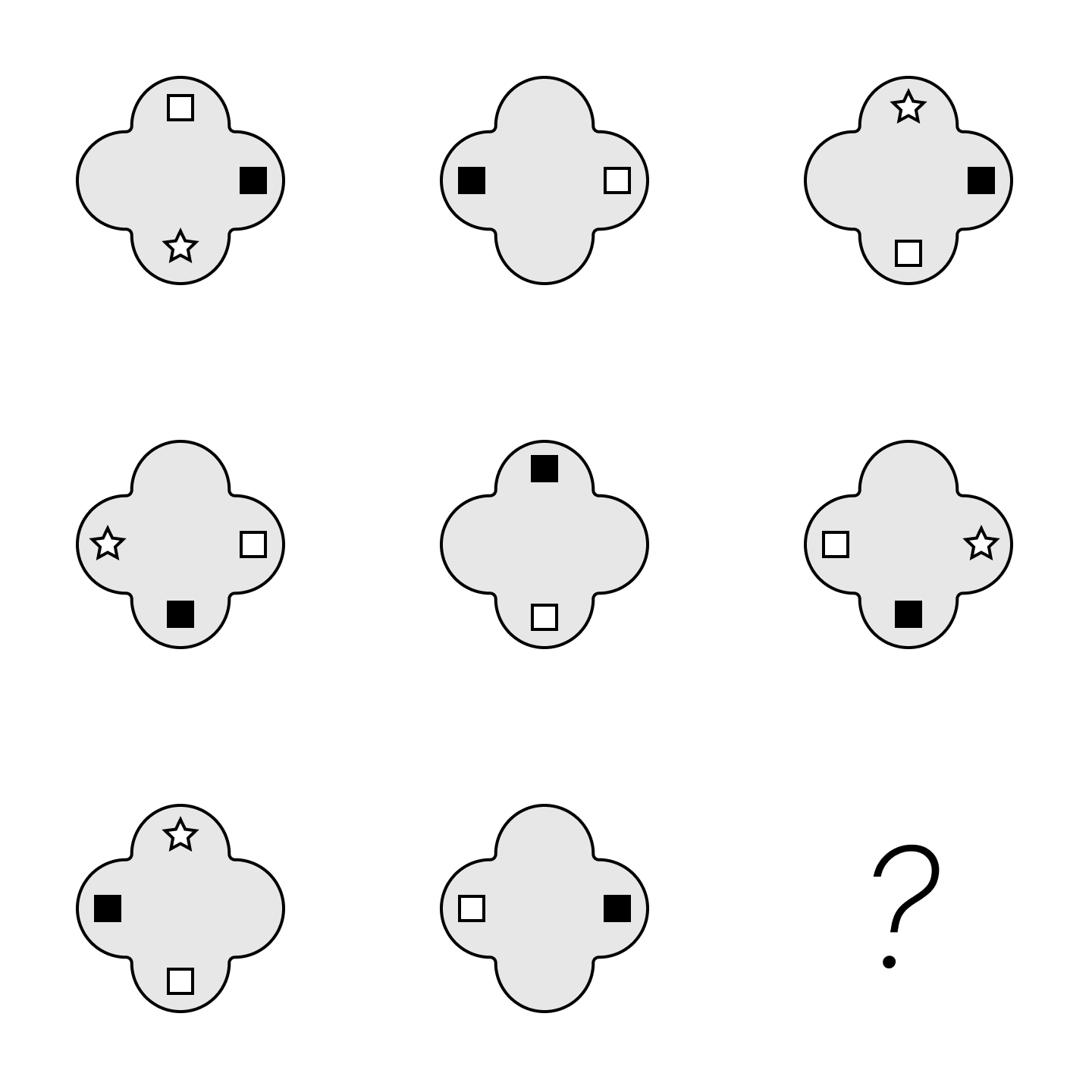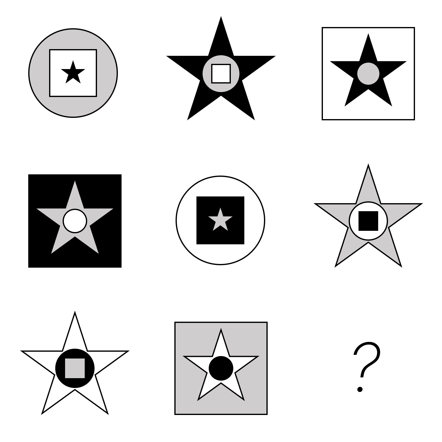 The figures in the matrix feature a white square, a black square, and a star, all positioned inside a rotating shape.