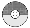 To determine the missing figure, we can observe that the color configuration missing from the last row is the one that includes a gray part, a patterned gray part, and a polka-dotted part. The only configuration missing in the matrix is one where the gray part is at the bottom, the patterned gray part is at the top, and the polka-dotted part is in the middle.
