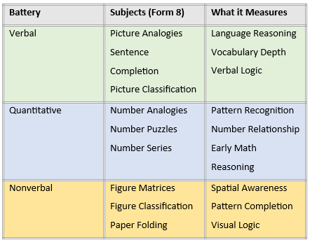 The 2025–2026 CogAT Test (Form 8) measures how well children reason using three kinds of thinking: